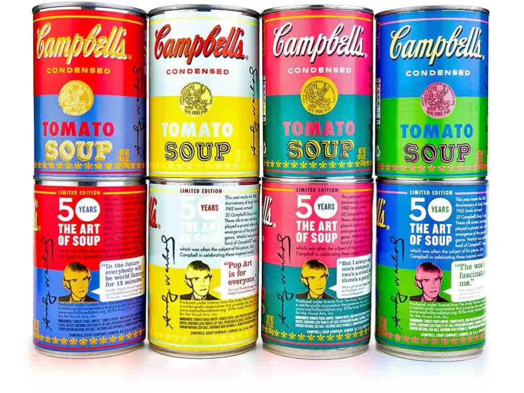 We launch a limited-edition series of cans of Campbell’s Condensed Tomato Soup with Andy Warhol-inspired labels to commemorate the 50th anniversary of the artist’s work.