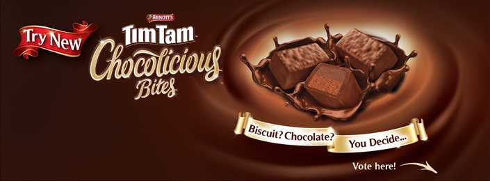 Taking the fervent love of the traditional Tim Tam, the brand has expanded the line of biscuits into other flavors and varieties, and now has launched Tim Tam Chocolicious Bites. The brand is spreading awareness of this launch via a social media campaign that asks consumers whether they believe the new Chocolicious Bites are a chocolate candy or a biscuit. The Tim Tam Facebook page has a link for fans to vote, and as of this post, nearly 10,000 fans have voted with 66% of the votes leaning toward “chocolate.”