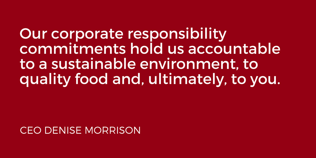 Then, moving along the path of farm-to-fork traceability, we’re transforming our relationships with suppliers through new Responsible Sourcing goals covering traceability of priority raw materials, supplier diversity and human rights. We’re also enforcing stringent animal welfare guidelines to ensure ethical and sustainable practices along our supply chain.